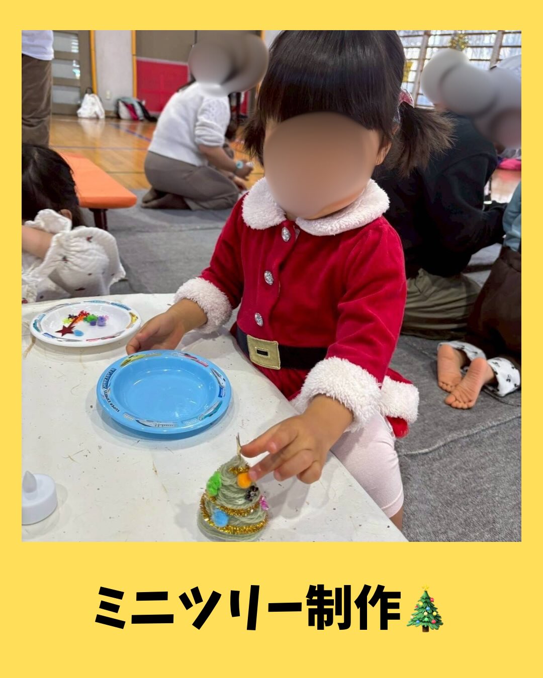 終わりにサンタさんと記念撮影をしましたが、娘は怖かったのかママにベッタリでした。