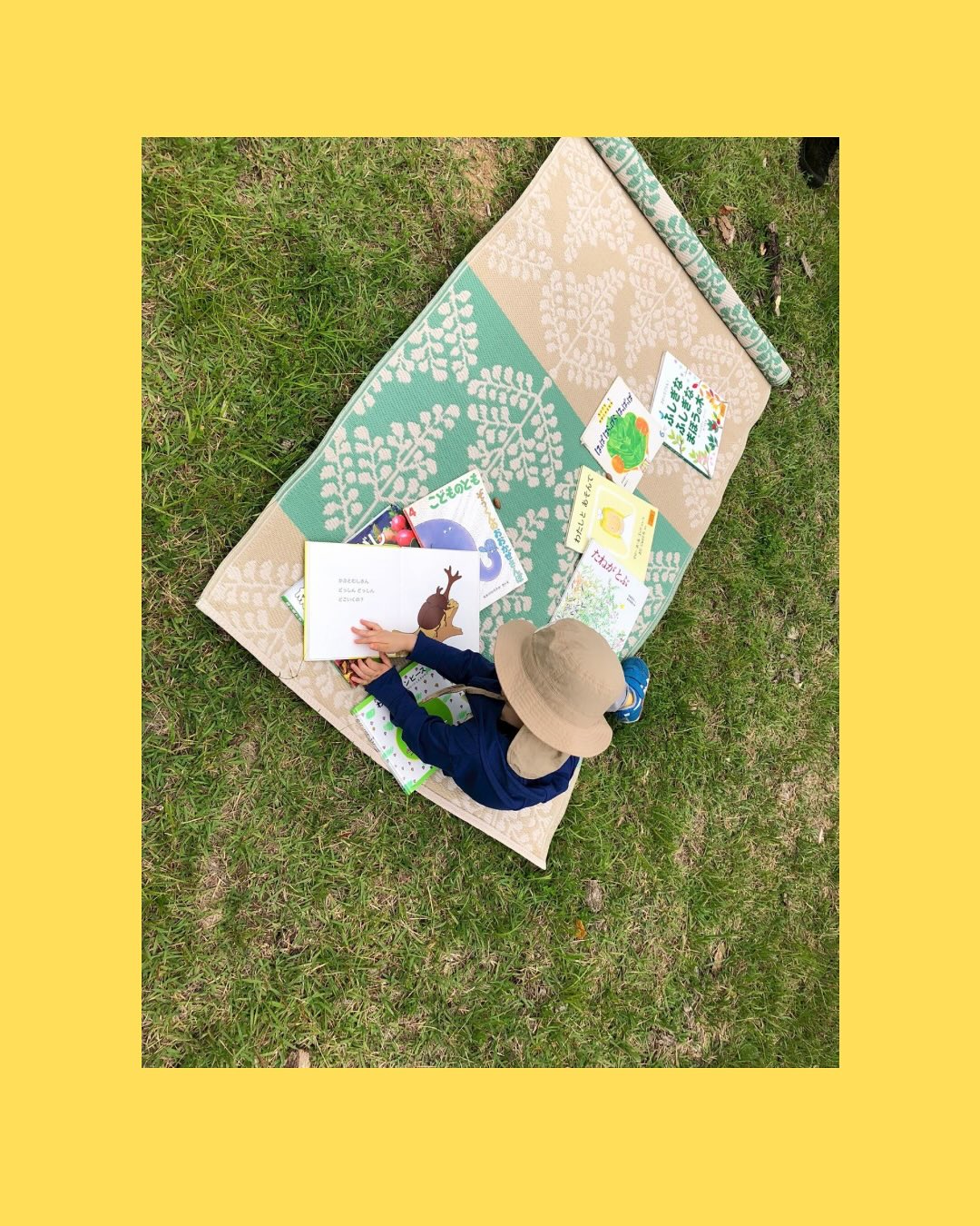 最後は太陽広場に集まって、今日見つけた草花について教えてもらったり、絵本を読んでもらったりしました。